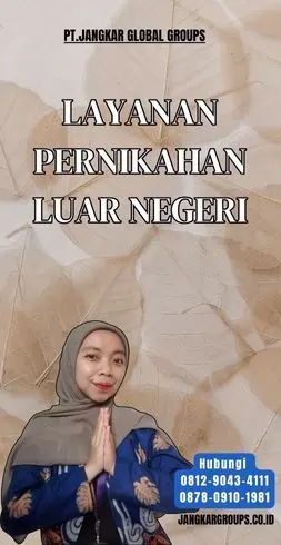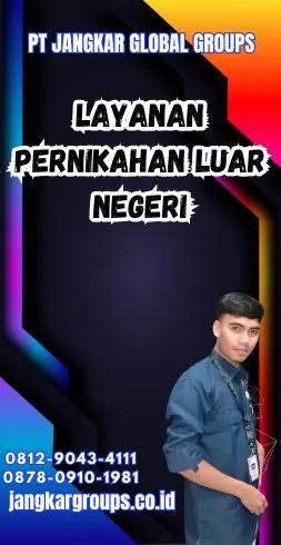 Jasa pernikahan luar negeri adalah cara praktis bagi pasangan yang ingin menikah di lokasi idaman atau memiliki latar belakang internasional.  Dengan adanya layanan ini, pasangan bisa berkonsentrasi pada kebahagiaan tanpa stres administrasi.  Dimanapun Anda merencanakan pernikahan, pastikan untuk memilih penyedia layanan yang dapat dipercaya untuk menjadikan acara tersebut tak terlupakan.